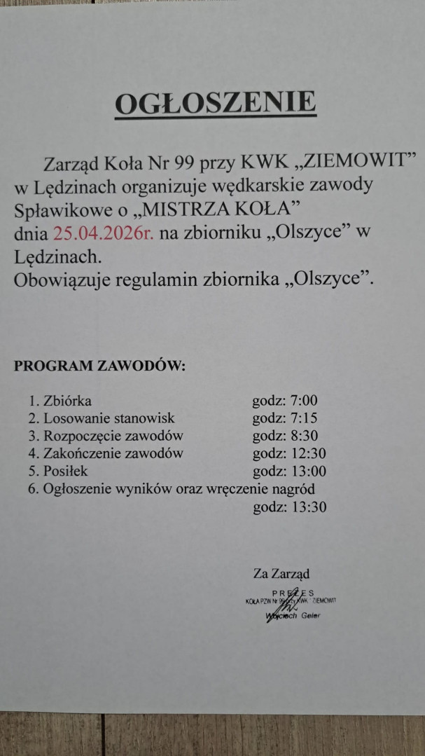 Harmonogram zawodów Koła w 2026r. -